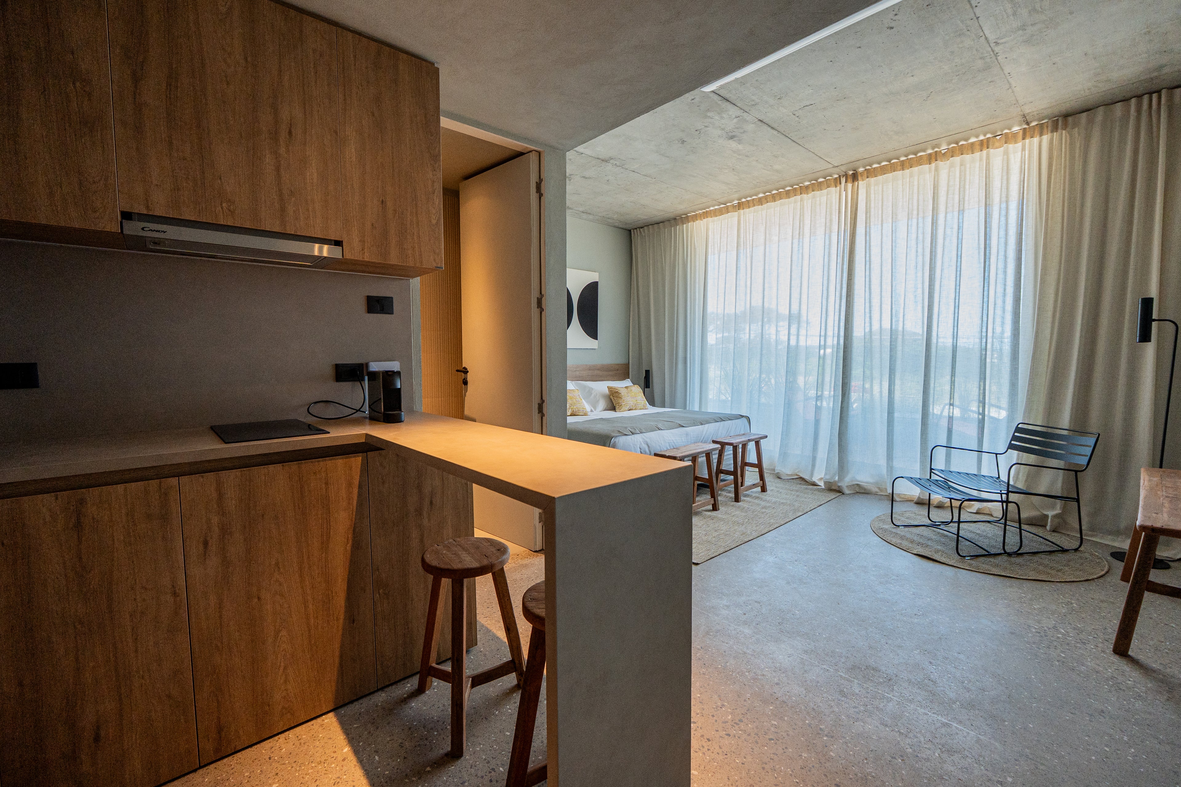 Respetamos el carácter original del hotel, utilizando maderas recuperadas y materiales nobles que aportan calidez y autenticidad a cada ambiente.