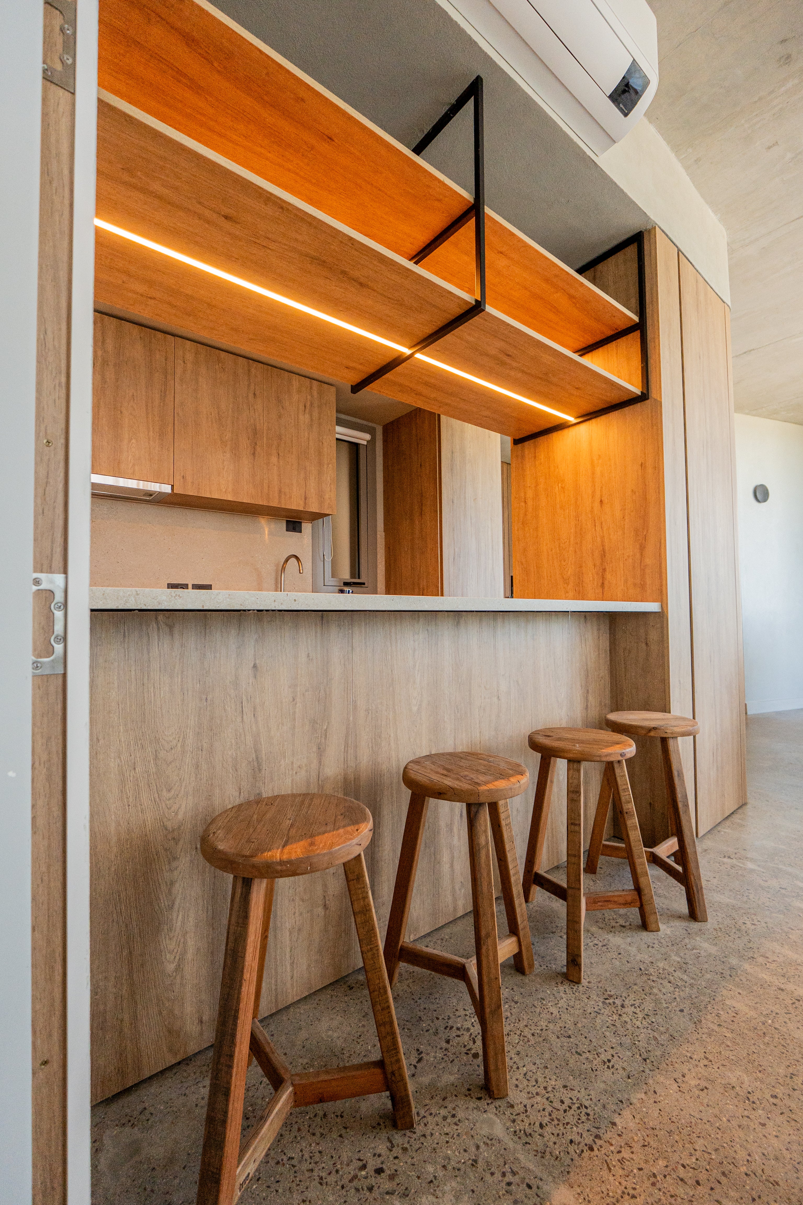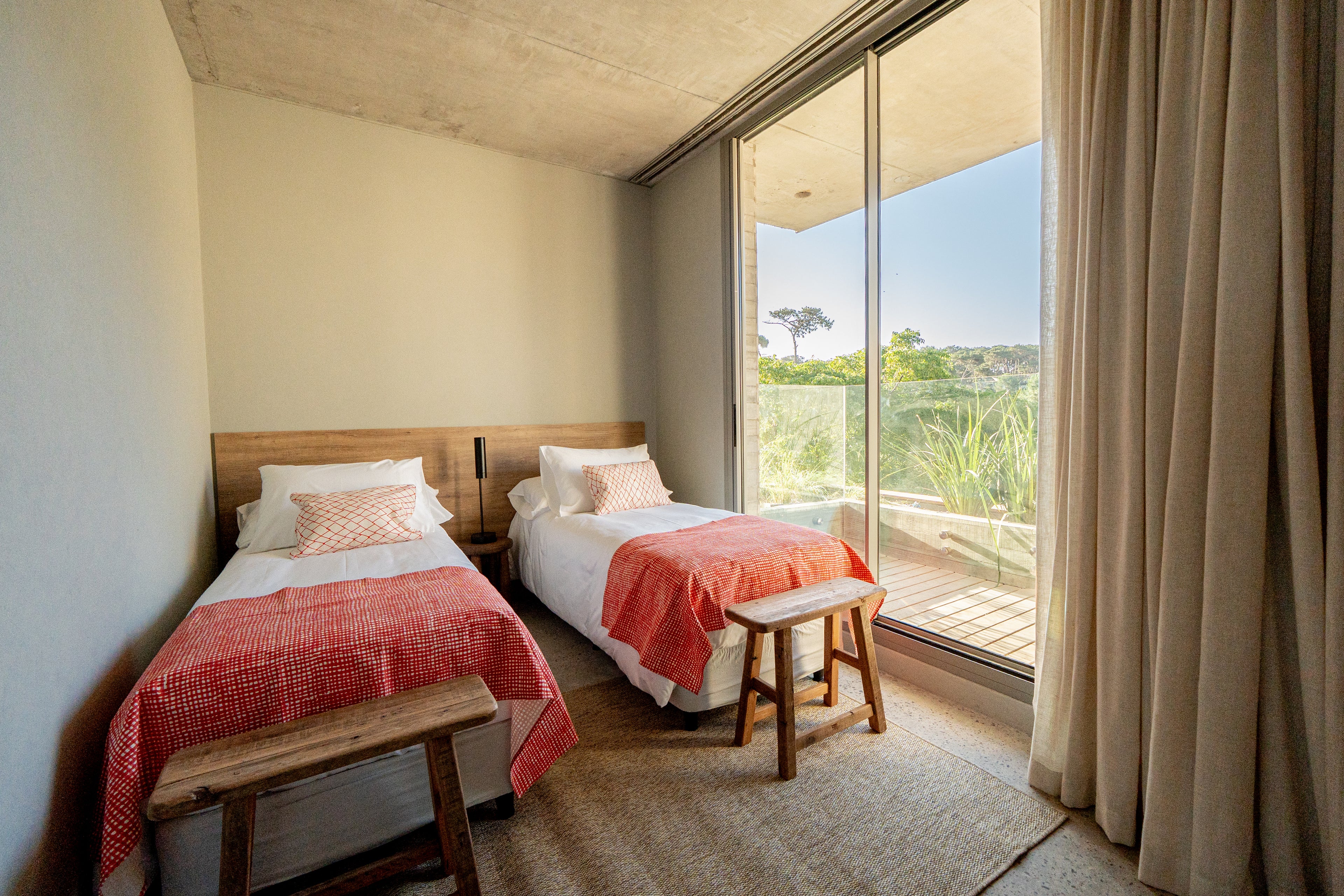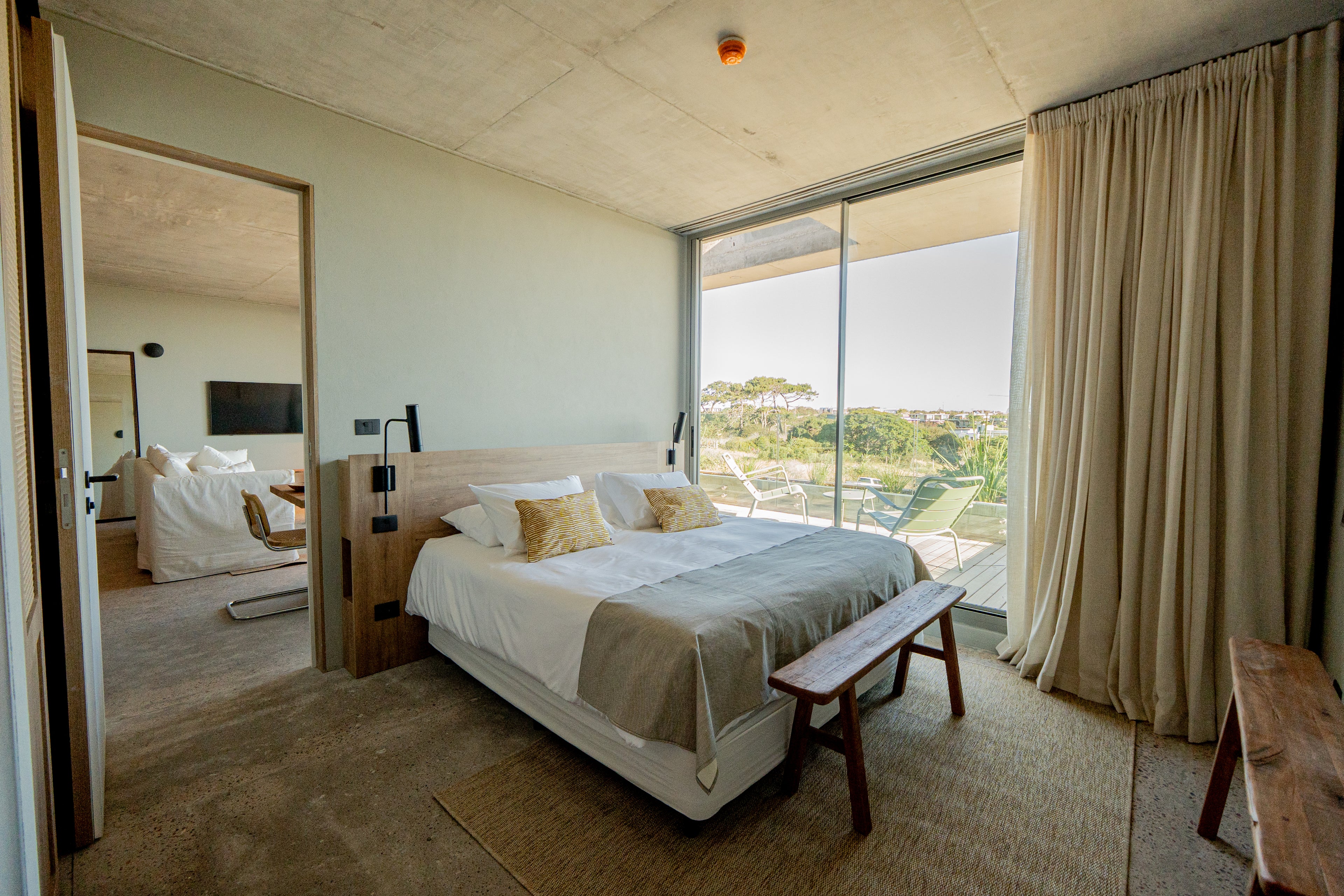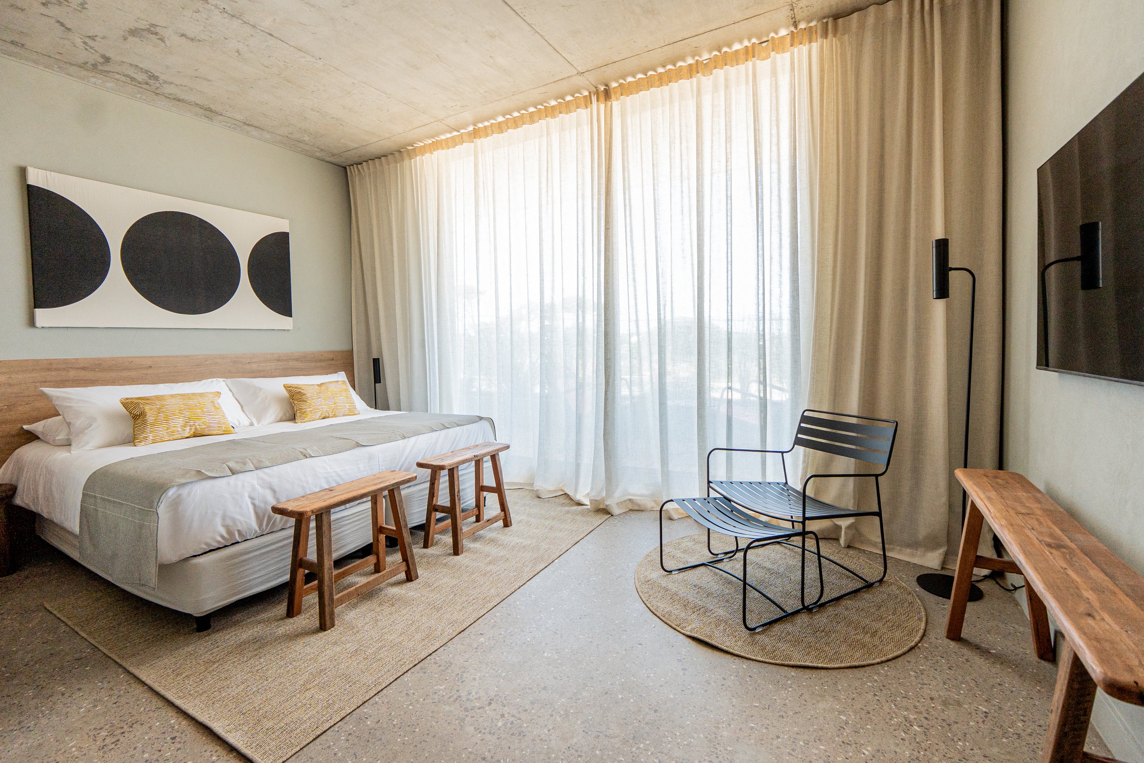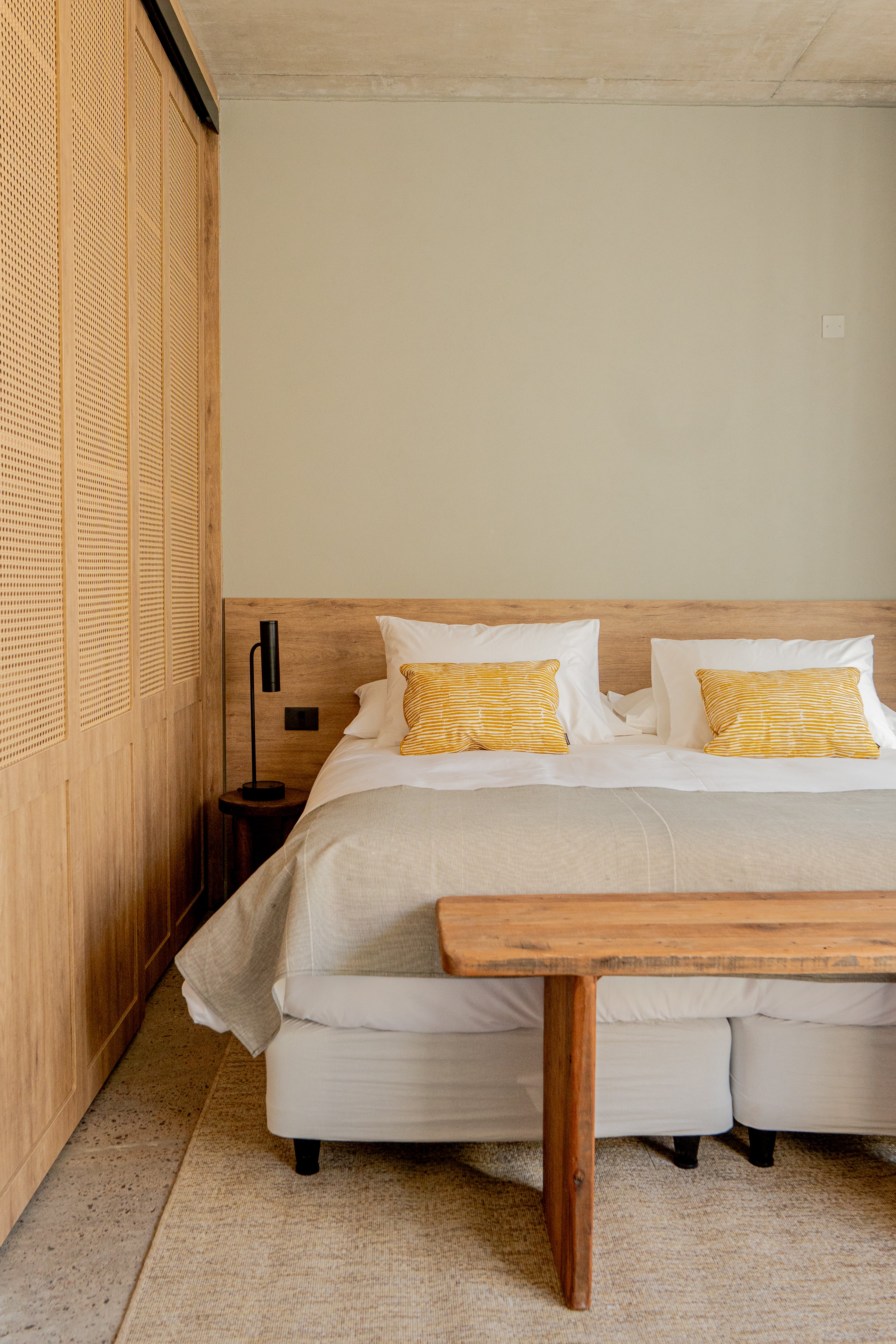 Para este hotel acompañamos 21 habitaciones con modelos propios de Trae: bancos, mesas altas, espejos a medida y percheros.