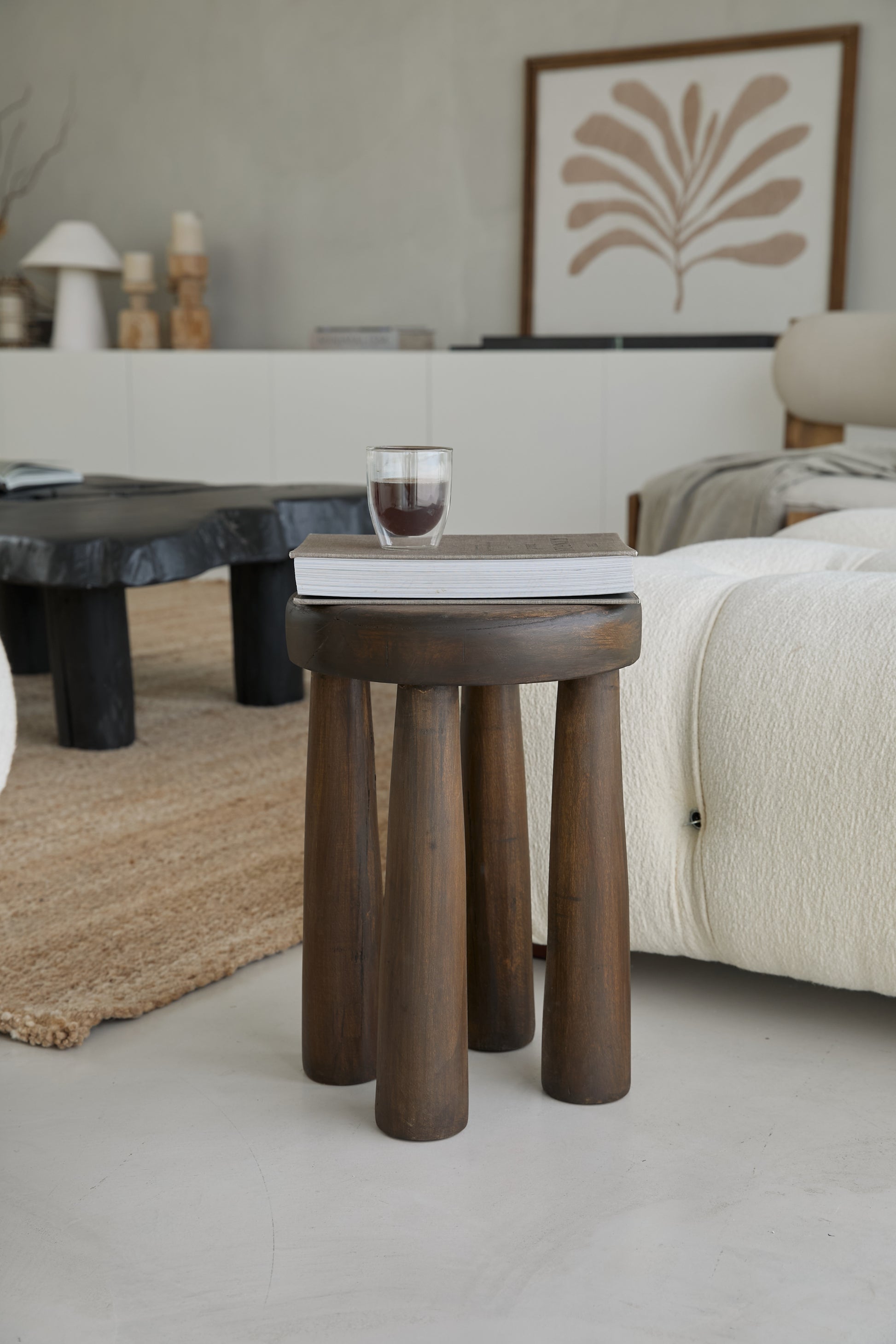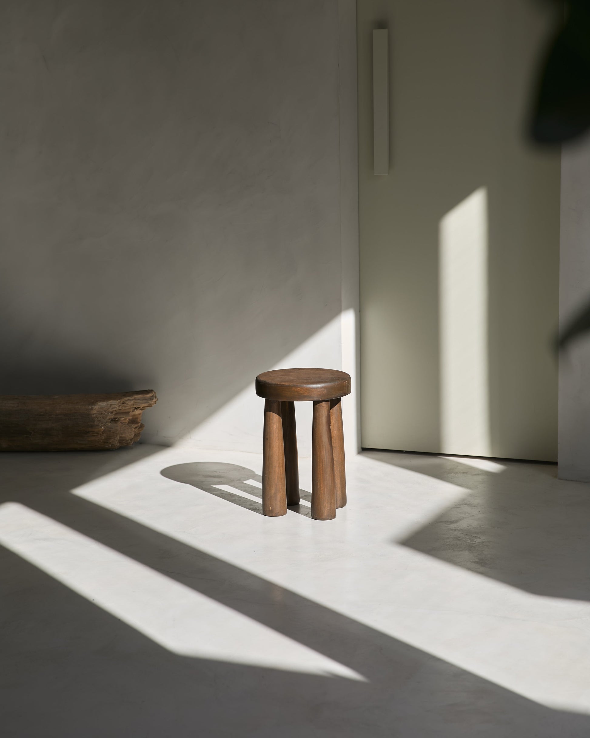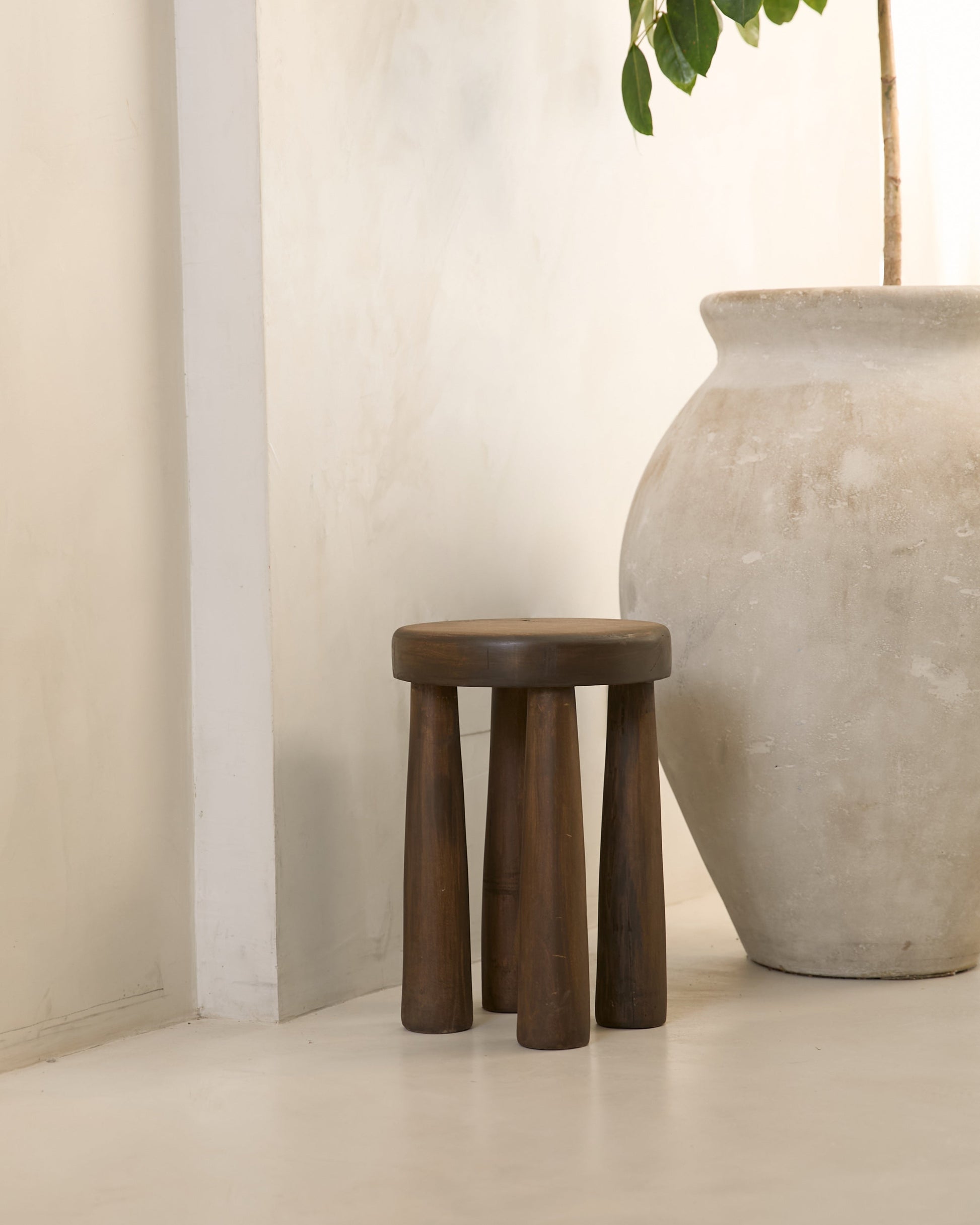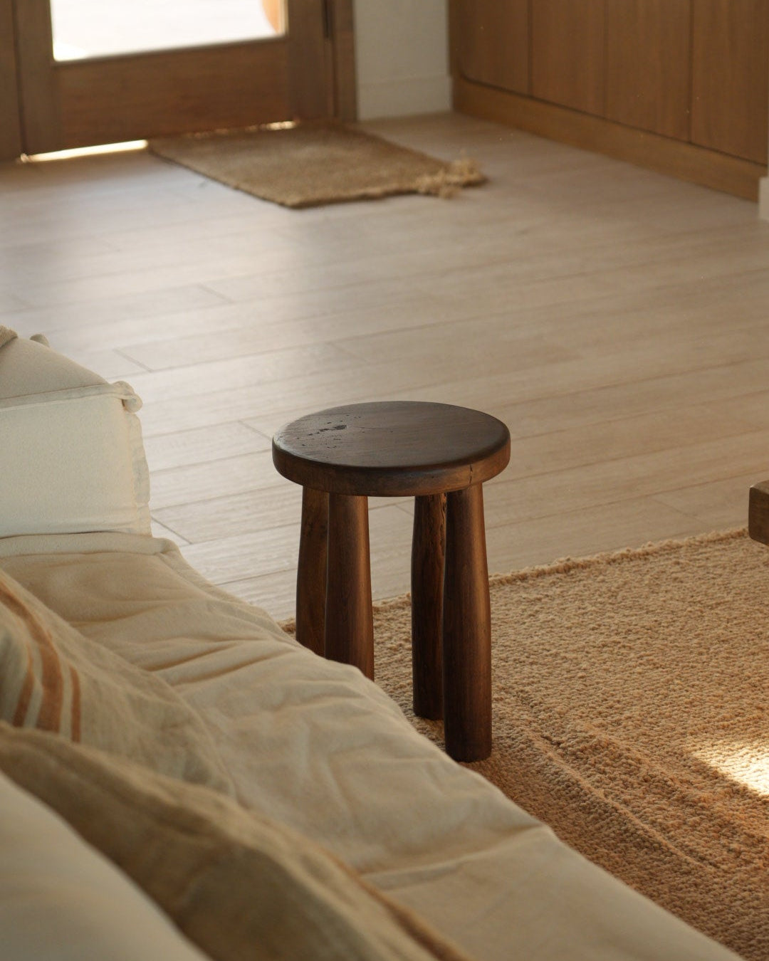Banco Africa realizado en madera maciza de Guatambu con tratamiento artesanal teñido que simula el envejecimiento de la madera y resalta las imperfecciones.